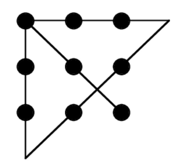 To illustrate what I mean, let's look at the classic 9-dot problem: Connect the dots with four straight lines without lifting the pen.